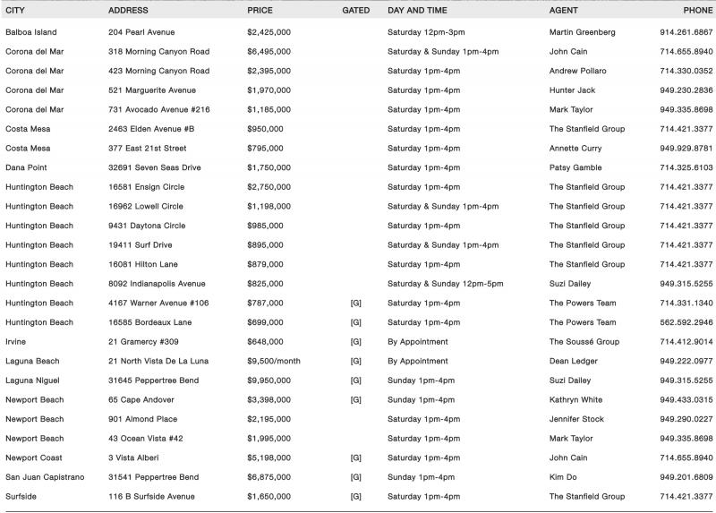 Costa Mesa 2463 Elden Avenue #B $950,000 Saturday 1pm-4pm The Stanfield Group 714.421.3377