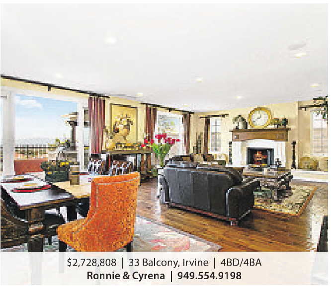 $2,728,808 | 33 Balcony, Irvine | 4BD/4BA Ronnie & Cyrena | 949.