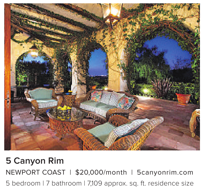 NEWPORT COAST | $20,000/month | 5canyonrim.com 5 bedroom | 7 bathroom | 7,109 approx. sq. ft. residence size