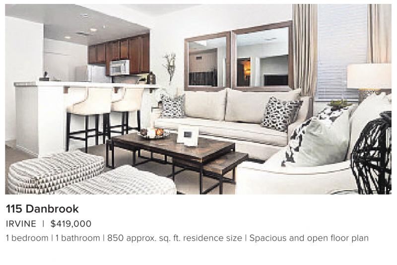 IRVINE | $419,000 1 bedroom | 1 bathroom | 850 approx. sq. ft. residence size | Spacious and open floor plan