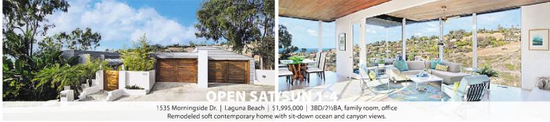 1535 Morningside Dr. | Laguna Beach | $1,995,000 | 3BD/2½BA, family room, office Remodeled soft contemporary home with sit-down ocean and canyon views.