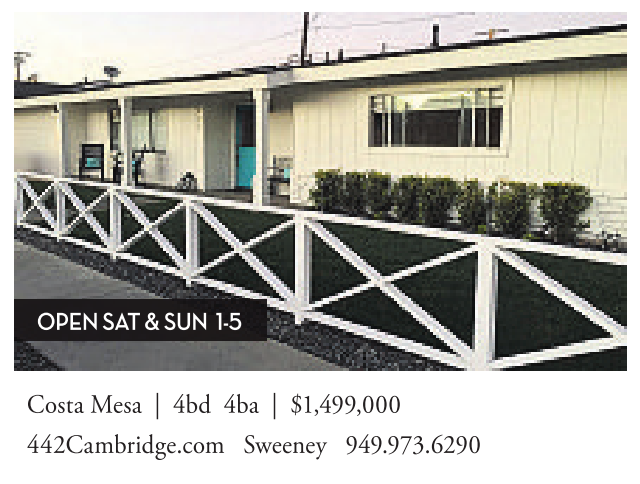 Costa Mesa | 4bd 4ba | $1,499,000 442Cambridge.com Sweeney 949.973.6290