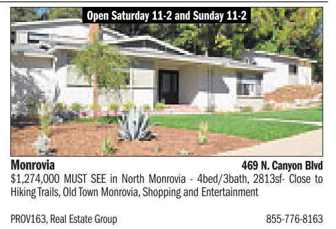 Monrovia 469N.Canyon Blvd $1,274,000 MUST SEE in North Monrovia - 4bed/3bath, 2813sf- Close to Hiking Trails, Old Town Monrovia, Shopping and Entertainment