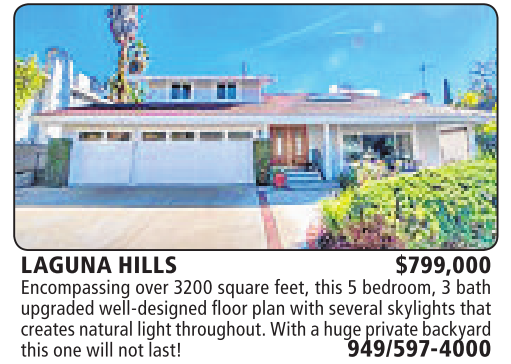 LAGUNA HILLS $799,000 Encompassing over 3200 square feet, this 5bedroom, 3bath upgraded well-designedfloorplanwithseveral skylightsthat