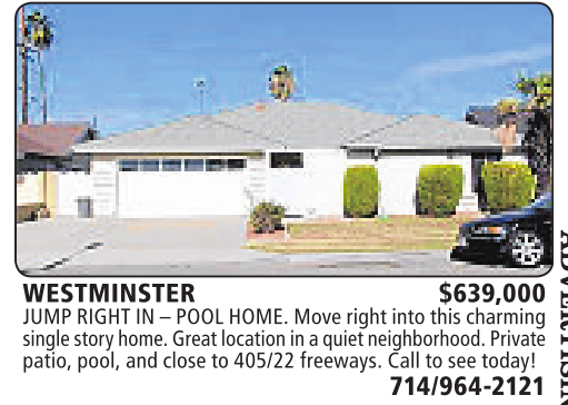 WESTMINSTER $639,000 JUMP RIGHTIN–POOLHOME.Move right intothis charming
