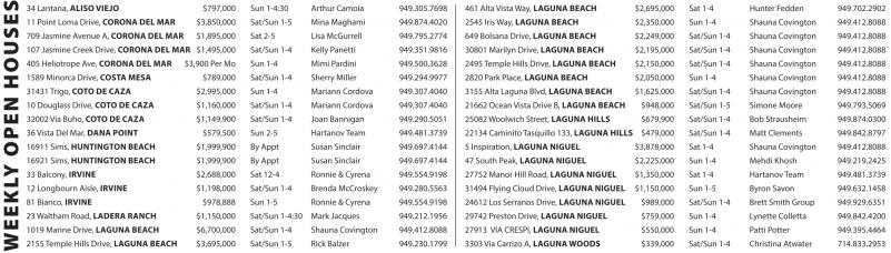 34 Lantana, ALISO VIEJO $797,000 Sun 1-4:30 Arthur Camoia 949.305.7698