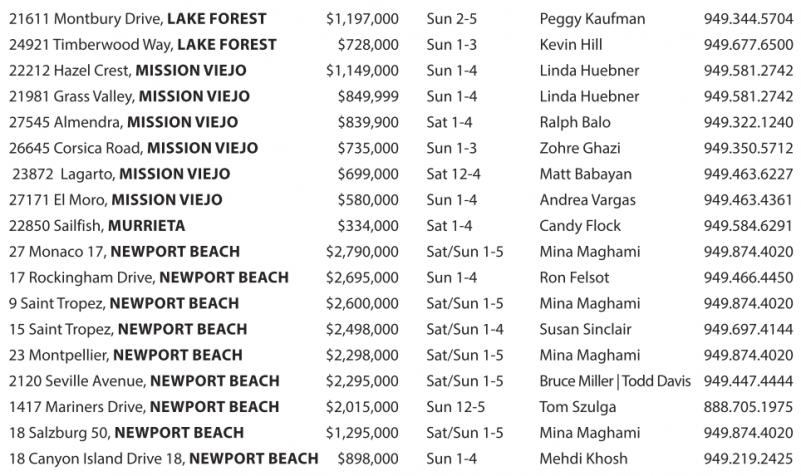 24921 Timberwood Way, LAKE FOREST $728,000 Sun 1-3 Kevin Hill 949.677.6500