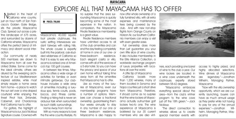no surprise that the area surrounding Mayacama is quickly becoming some of the most expensive in the nation. In comparison, the Mayacama Private residence membership is a great value.