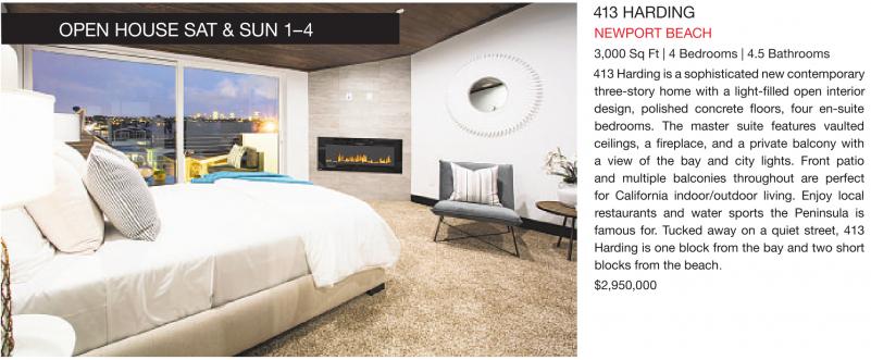 3,000 Sq Ft | 4 Bedrooms | 4.5 Bathrooms 413 Harding is a sophisticated new contemporary three-story home with a light-filled open interior design, polished concrete floors, four en-suite bedrooms. The master suite features vaulted ceilings, a fireplace, and a private balcony with a view of the bay and city lights. Front patio and multiple balconies throughout are perfect for California indoor/outdoor living. Enjoy local restaurants and water sports the Peninsula is famous for. Tucked away on a quiet street, 413 Harding is one block from the bay and two short blocks from the beach. $2,950,000