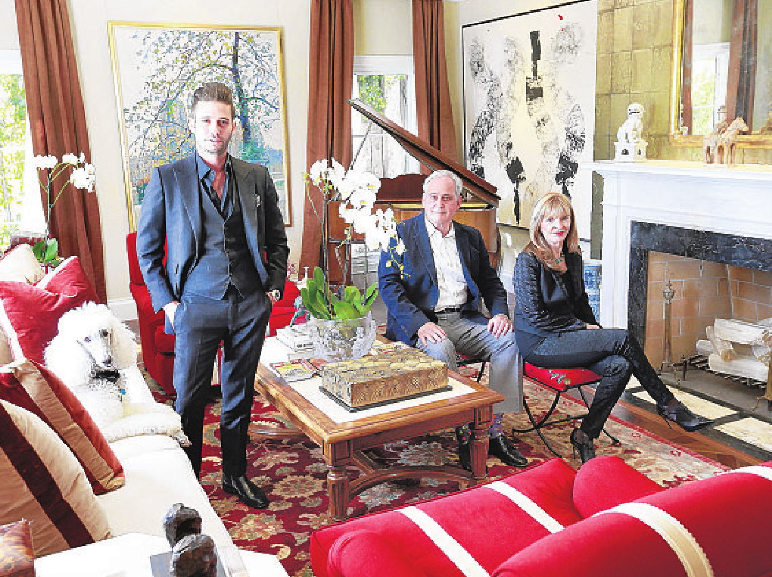 It’s a formal room. It’s got beautiful Scalamandre and Oscar de la Renta fabrics. The room is filled with beautiful artwork [by artists] such as David Hockney, and Henri Moore sculptures. It’s very eclectic.