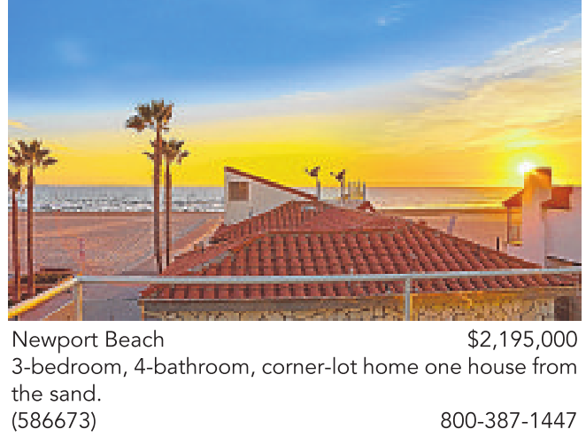 Newport Beach $2,195,000 3-bedroom, 4-bathroom, corner-lot home one house from the sand. (586673) 800-387-1447