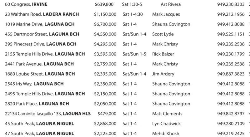 2495 Temple HillsDrive, LAGUNA BCH $2,150,000 Sat 1-4 Shauna Covington 949.412.8088
