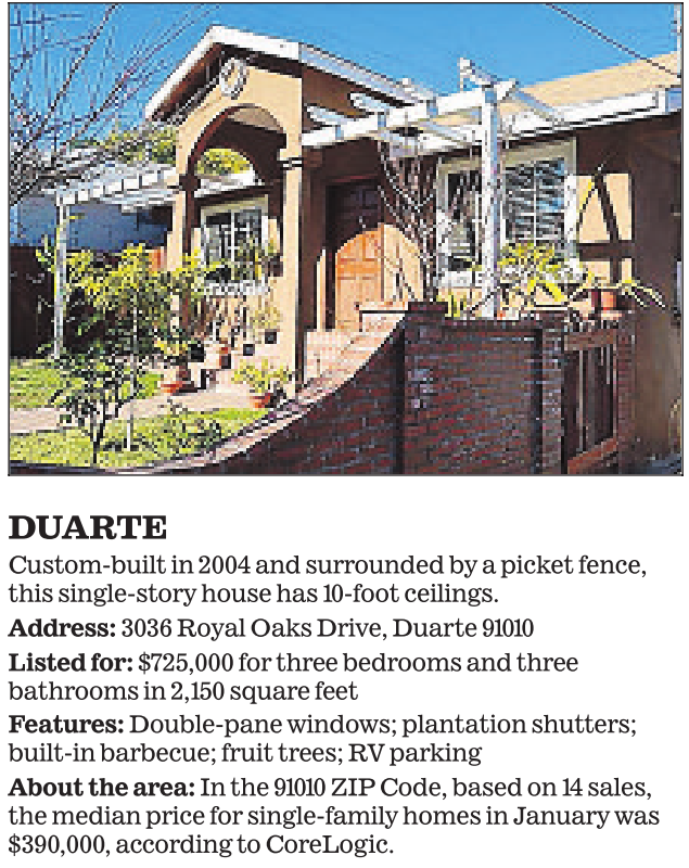 DUARTE Custom-built in 2004 and surrounded by a picket fence, this single-story house has 10-foot ceilings.