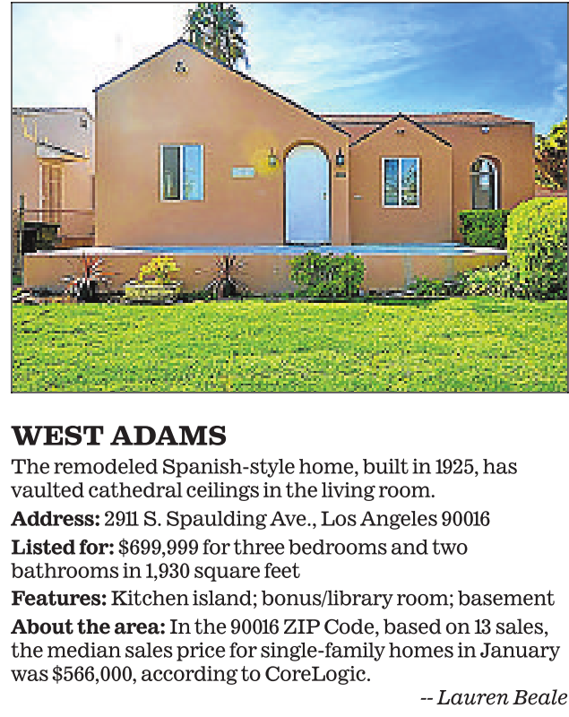 Address: 2911 S. Spaulding Ave., Los Angeles 90016 Listed for: $699,999 for three bedrooms and two bathrooms in 1,930 square feet