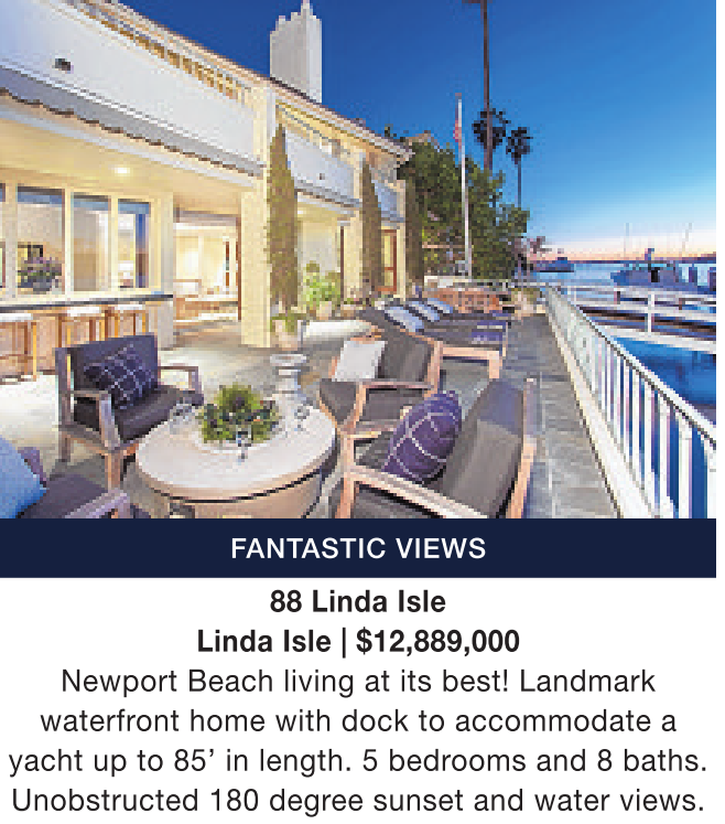 Newport Beach living at its best! Landmark waterfront home with dock to accommodate ayacht up to 85’ in length. 5 bedrooms and 8 baths.