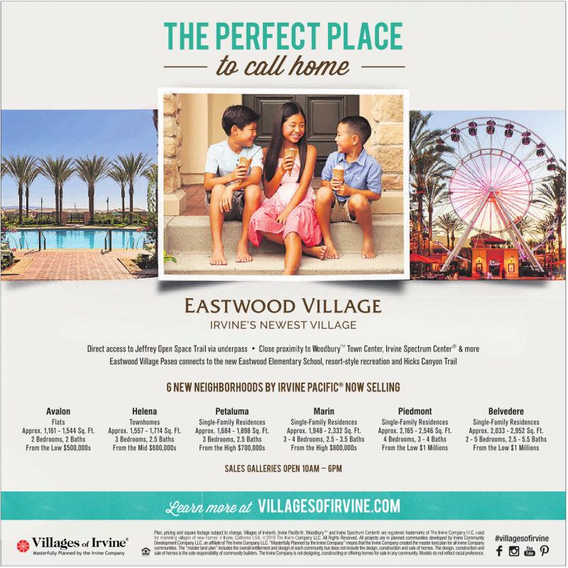 Town Center, Irvine Spectrum Center® & more Eastwood Village Paseo connects to the new Eastwood Elementary School, resort-style recreation and Hicks Canyon Trail