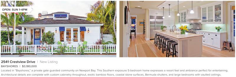 BAYSHORES | $3,180,000 Located in “Bayshores,” a private gate guarded community on Newport Bay. This Southern exposure 5-bedroom home expresses a resort feel and ambiance perfect for entertaining. Architectural details are complete with custom cabinetry throughout, exotic bamboo floors, coastal stone surfaces, Bermuda shutters, and large bedrooms with vaulted ceilings.