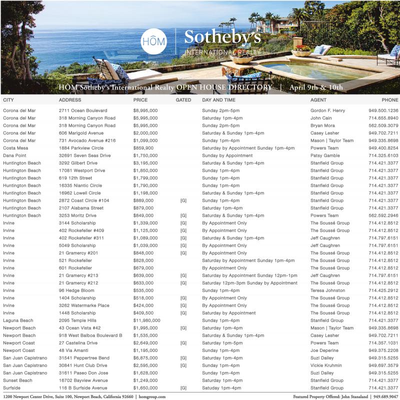 HÔM Sotheby's International Realty OPEN HOUSE DIRECTORY | April 9th & 10th