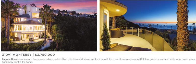 Laguna Beach: Iconic round house perched above Aliso Creek sits this architectural masterpiece with the most stunning panoramic Catalina, golden sunset and whitewater ocean views from every point in the home.