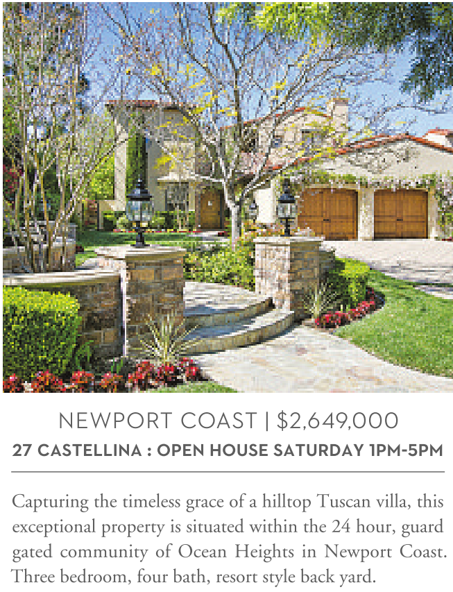 NEWPORT COAST | $2,649,000 27 castellina : open house saturday 1pm-5pm