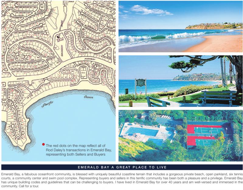 red dots on the map reflect all of Rod Daley’s transactions in Emerald Bay, representing both Sellers and Buyers