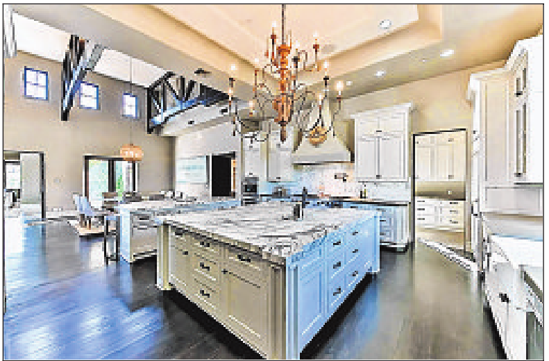 Amenities of note include a game room, a movie room, two offices and a lavish cook’s kitchen with a pair of marble-topped islands.