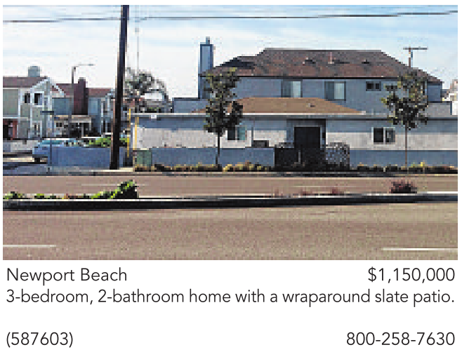 Newport Beach $1,150,000 3-bedroom, 2-bathroom home with a wraparound slate patio.