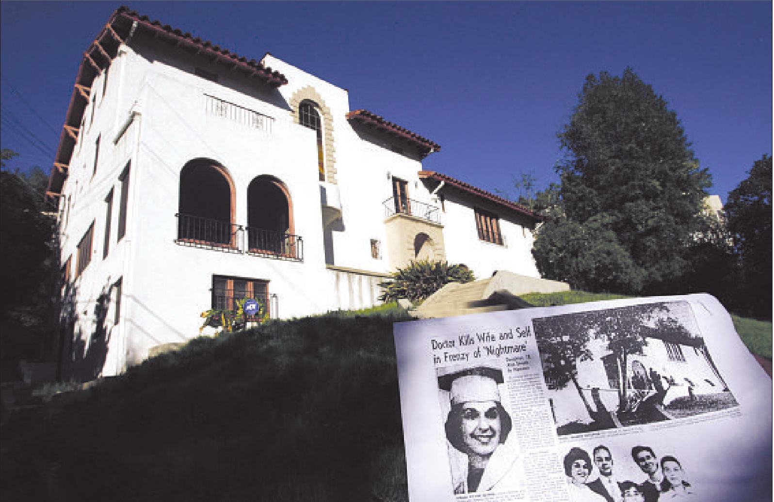The 1920s Spanish Colonial Revival gained notoriety on the night of Dec. 6, 1959, when thenowner Dr. Harold Perelson used a ball-peen hammer to bludgeon his sleeping wife to death in their bedroom. The 50-year-old cardiologist then turned on their teenage daughter, striking her with the hammer, before committing suicide by drinking a glass of acid.