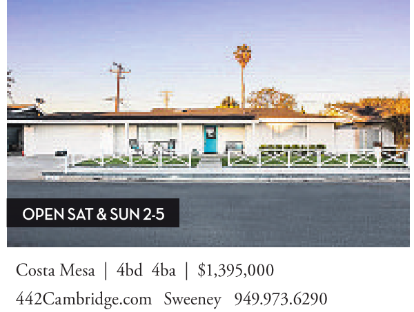 Costa Mesa | 4bd 4ba | $1,395,000 442Cambridge.com Sweeney 949.973.6290