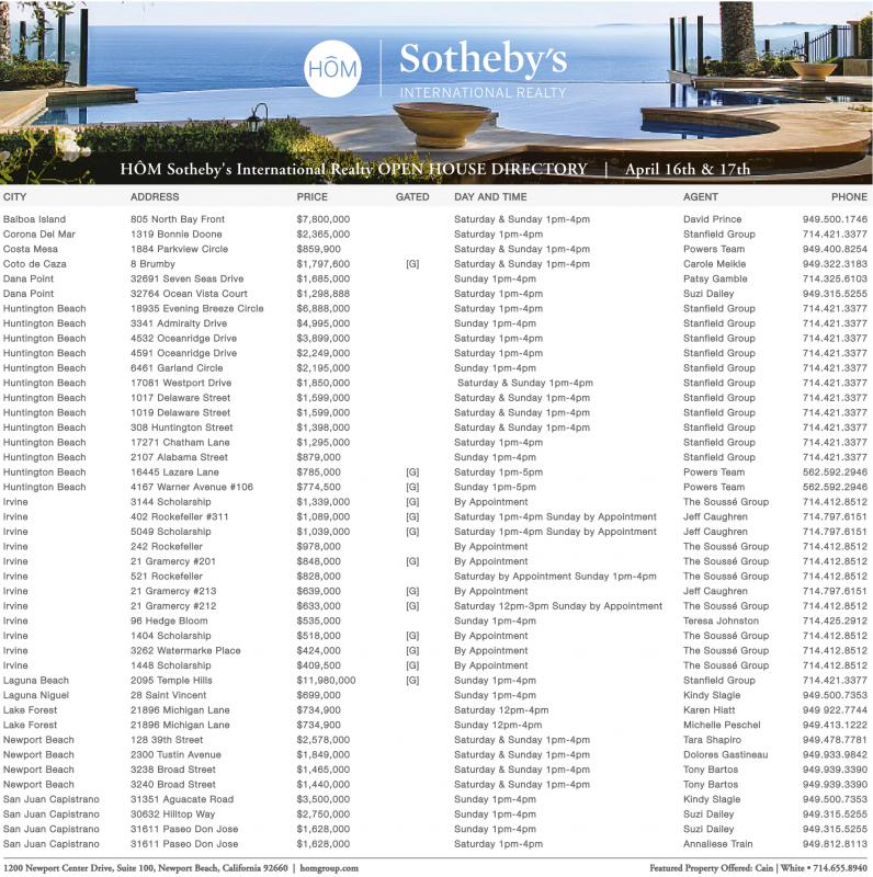 HÔM Sotheby's International Realty OPEN HOUSE DIRECTORY | April 16th & 17th