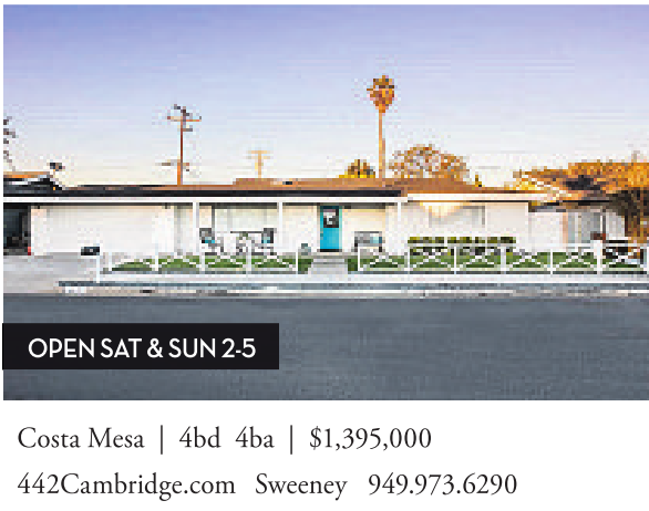 Costa Mesa | 4bd 4ba | $1,395,000 442Cambridge.com Sweeney 949.973.6290
