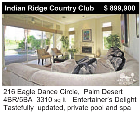 216 Eagle Dance Circle, Palm Desert 4BR/5BA 3310 sq ft Entertainer’s Delight Tastefully updated, private pool and spa
