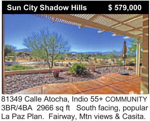 81349 Calle Atocha, Indio 55+ COMMUNITY 3BR/4BA 2966 sq ft South facing, popular La Paz Plan. Fairway, Mtn views & Casita.