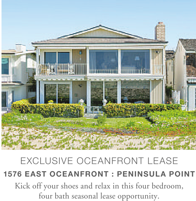 1576 EAST OCEANFRONT : PENINSULA POINT Kick off your shoes and relax in this four bedroom, four bath seasonal lease opportunity.