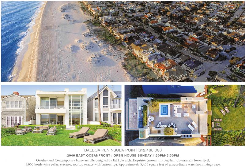 2046 EAST OCEANFRONT : OPEN HOUSE SUNDAY 1:30PM-3:30PM On-the-sand Contemporary home artfully designed by Ed Lohrbach. Exquisite custom finishes, full subterranean lower level, 1,000 bottle wine cellar, elevator, rooftop terrace with custom spa. Approximately 5,400 square feet of extraordinary waterfront living space.
