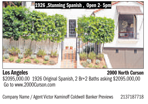 Los Angeles 2000 NorthCurson $2095,000.00 1926 Original Spanish, 2Br+2 Baths asking $2095.000,00 Go to www.2000Curson.com