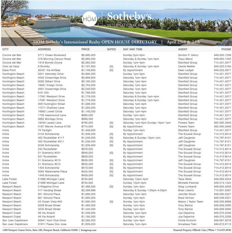 HÔM Sotheby's International Realty OPEN HOUSE DIRECTORY | April 23rd & 24th