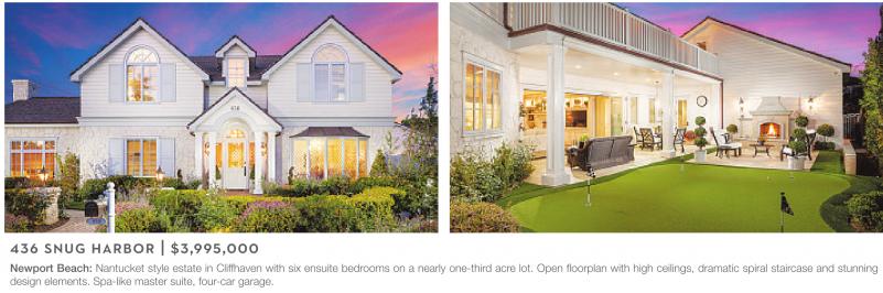 Newport Beach: Nantucket style estate in Cliffhaven with six ensuite bedrooms on a nearly one-third acre lot. Open floorplan with high ceilings, dramatic spiral staircase and stunning design elements. Spa-like master suite, four-car garage.