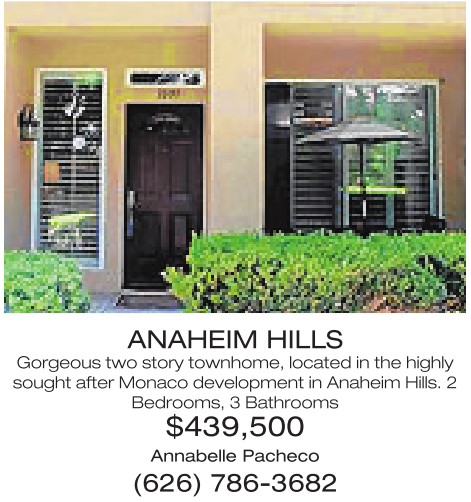 sought after Monaco development in Anaheim Hills. 2 Bedrooms, 3Bathrooms $439,500