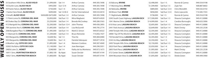 39 PrairieFalcon, ALISO VIEJO $750,000 Sun 1-4 Arthur Camoia 949.305.7698