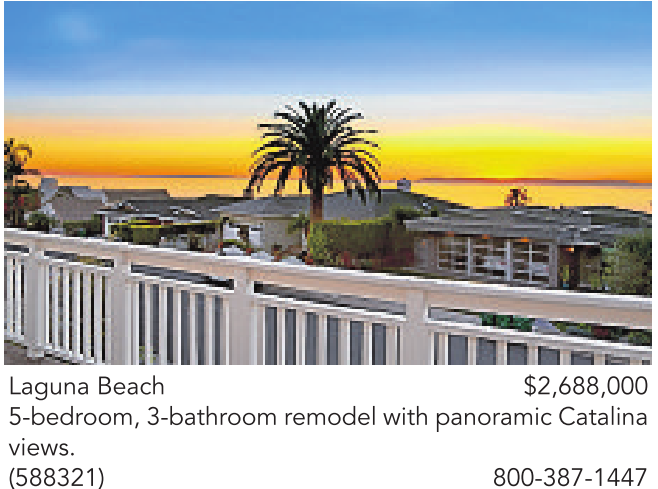 Laguna Beach $2,688,000 5-bedroom, 3-bathroom remodel with panoramic Catalina views. (588321) 800-387-1447