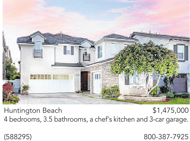 Huntington Beach $1,475,000 4bedrooms, 3.5 bathrooms, achef’s kitchen and 3-car garage.