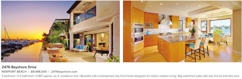 2476 Bayshore Drive NEWPORT BEACH | $9,488,000 | 2476bayshore.com 5 bedroom | 5.5 bathroom | 4,967 approx. sq. ft. residence size | Beautiful soft-contemporary bay front home designed for indoor outdoor living | Big waterfront patio with spa, fire pit and bbq area