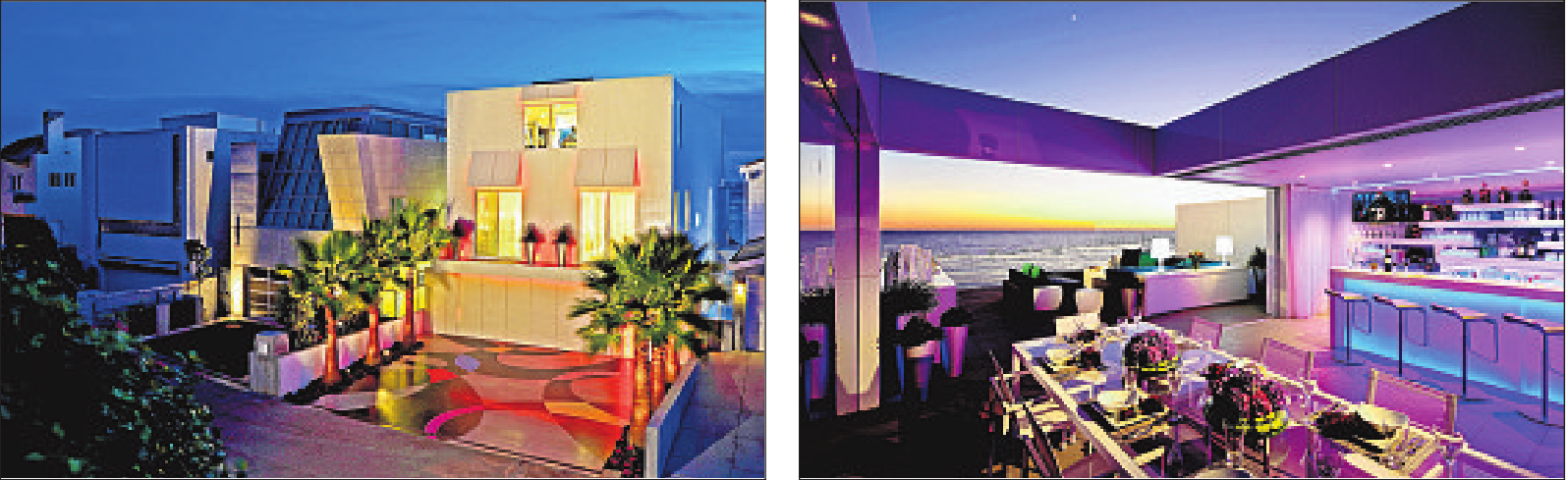 But it’s the mood lighting that really makes the place stand out — especially at night. The 4,298 square feet of clean-lined interiors have white stone and plaster wall finishes that show off the coloredlighting feature. The ambience can be changed with shades of red, blue and purple at the touch of a button.