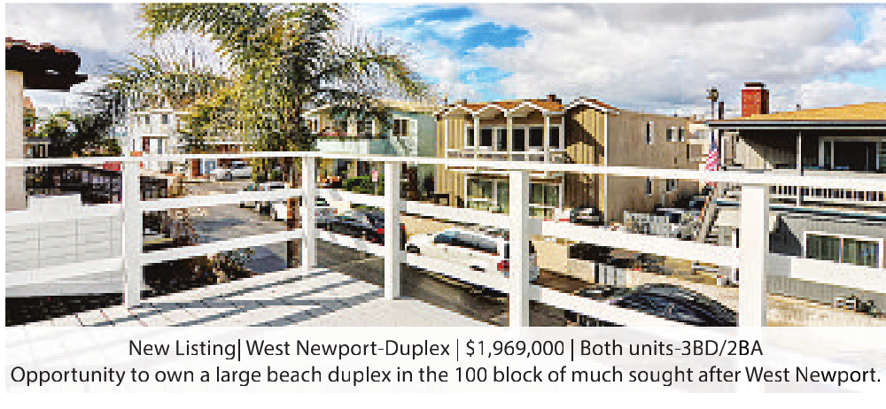 New Listing| West Newport-Duplex | $1,969,000 | Both units-3BD/2BA Opportunity to own a large beach duplex in the 100 block of much sought after West Newport.