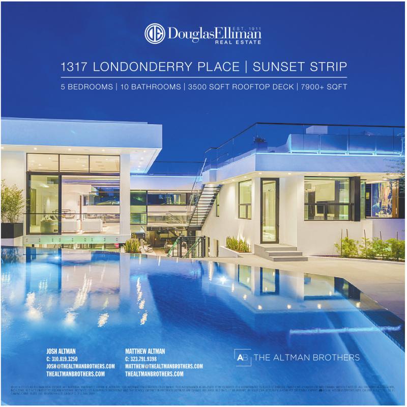 1317 LONDONDERRY PL ACE | SUNSE T STRIP 5 BEDROOMS | 10 BATHROOMS | 3500 SQFT ROOFTOP DECK | 7900+ SQFT JOSH ALTMAN C: 310.819.3250 JOSH@THEALTMANBROTHERS.COM THEALTMANBROTHERS.COM MATTHEW ALTMAN C: 323.791.9398 MATTHEW@THEALTMANBROTHERS.COM THEALTMANBROTHERS.COM © 2016 DOUGLAS ELLIMAN REAL ESTATE. ALL MATERIAL PRESENTED HEREIN IS INTENDED FOR INFORMATION PURPOSES ONLY. WHILE, THIS INFORMATION IS BELIEVED TO BE CORRECT, IT IS REPRESENTED SUBJECT TO ERRORS, OMISSIONS, CHANGES OR WITHDRAWAL WITHOUT NOTICE. ALL PROPERTY INFORMATION, INCLUDING, BUT NOT LIMITED TO SQUARE FOOTAGE, ROOM COUNT, NUMBER OF BEDROOMS AND THE SCHOOL DISTRICT IN PROPERTY LISTINGS ARE DEEMED RELIABLE, BUT SHOULD BE VERIFIED BY YOUR OWN ATTORNEY, ARCHITECT OR ZONING EXPERT. EQUAL HOUSING OPPORTUNITY. CALBRE 01947727. 150 EL CAMINO DRIVE, SUITE 150, BEVERLY HILLS, CA 90212. 310.595.3888.