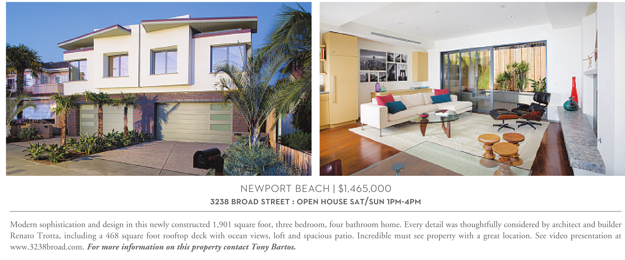 Modern sophistication and design in this newly constructed 1,901 square foot, three bedroom, four bathroom home. Every detail was thoughtfully considered by architect and builder Renato Trotta, including a 468 square foot rooftop deck with ocean views, loft and spacious patio. Incredible must see property with a great location. See video presentation at www.3238broad.com. For more information on this property contact Tony Bartos.