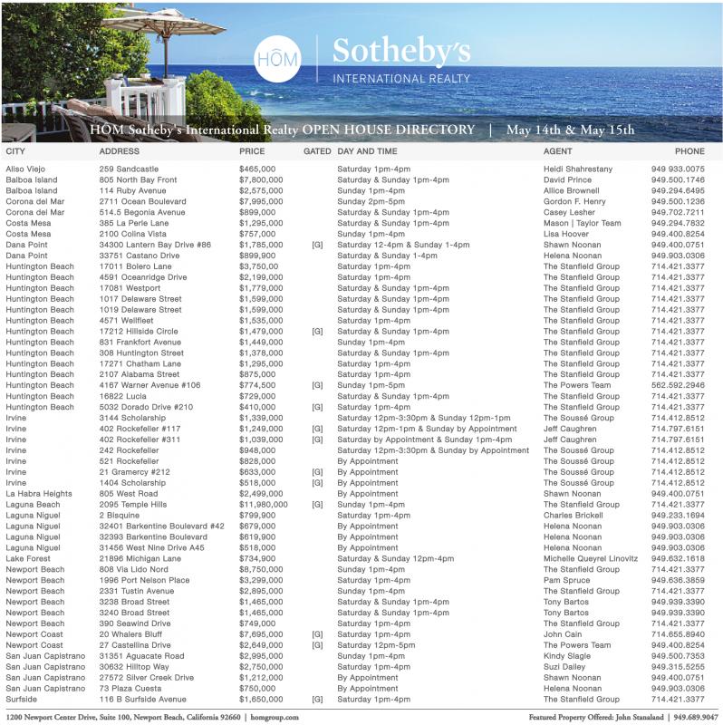 HÔM Sotheby's International Realty OPEN HOUSE DIRECTORY | May 14th & May 15th