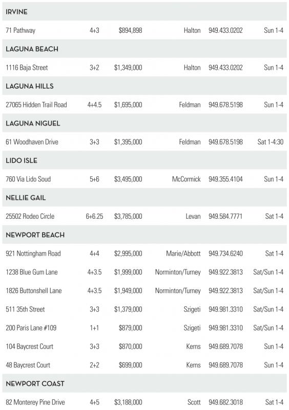 IRVINE 71 Pathway 4+3 $894,898 Halton 949.433.0202 Sun 1-4 GUNA BEACH 1116 Baja Street 3+2 $1,349,000 Halton 949.433.0202 Sun 1-4