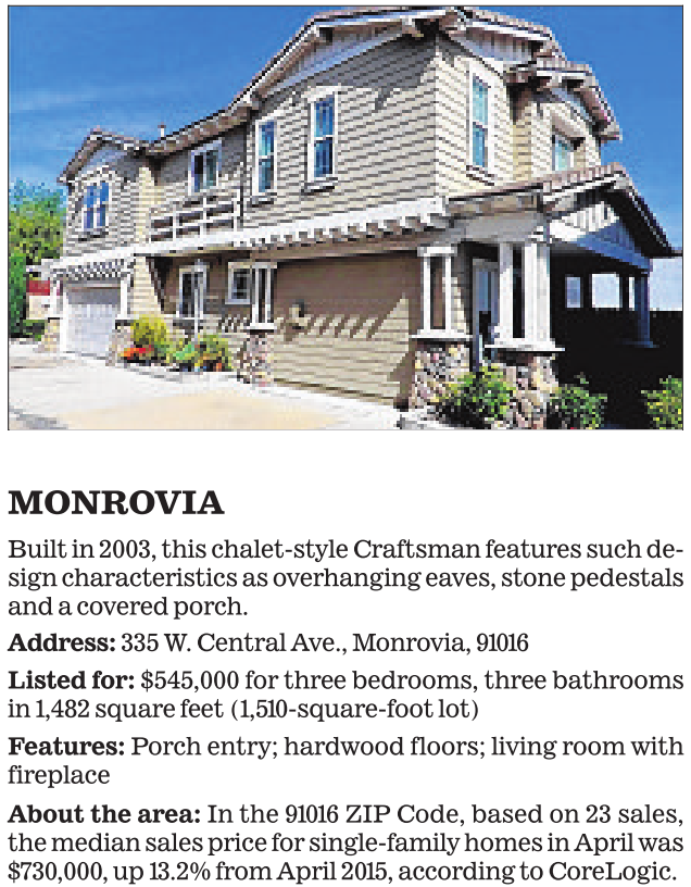 About the area: In the 91016 ZIP Code, based on 23 sales, the median sales price for single-family homes in April was $730,000, up 13.2% from April 2015, according to CoreLogic.